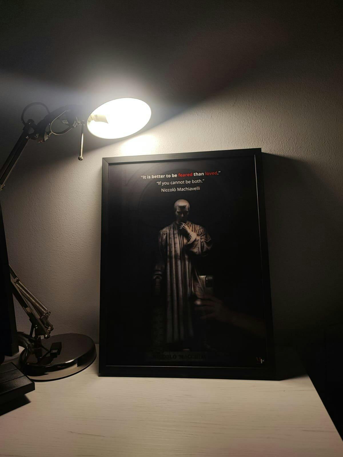I bought the Machiavelli framed poster for my home office, and it honestly exceeded my expectations. The print is sharp, the frame feels high-quality, and the dark gradient gives it a very refined, almost dramatic presence.